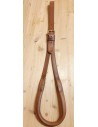 Ce tapis de monte à cru est conçu avec des attaches étrivières et une attache croupière. Sa sangle est en cuir chromé.