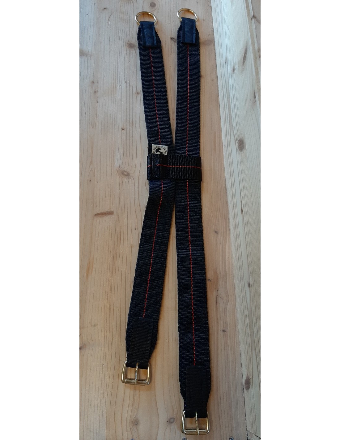 Cette sangle en toile est assemblée avec du néoprène au contact du cheval afin d'optimiser le confort. La bouclerie est en laiton massif.