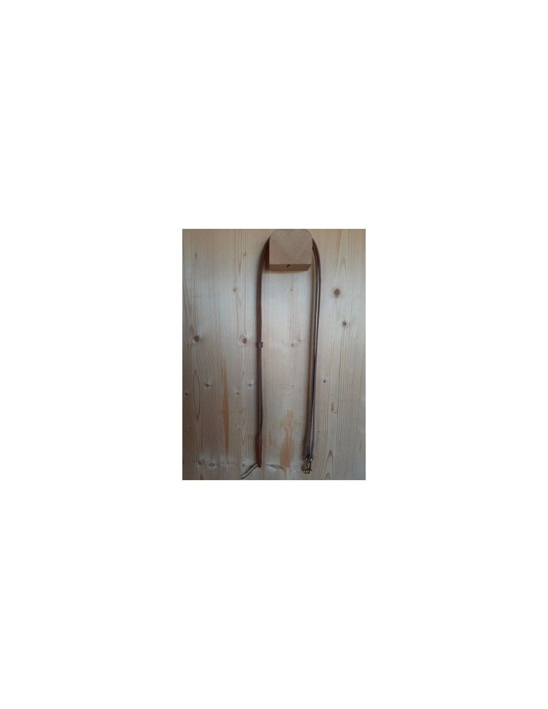 Ces rênes sont fabriquées dans un cuir naturel à tannage végétal. Elles comportent des mousquetons pour une attache plus rapide. Le bout des rênes est fermé grâce à un "lacet" de cuir. Elles peuvent s'utiliser pour la monte à une main grâce à leur passant coulant.