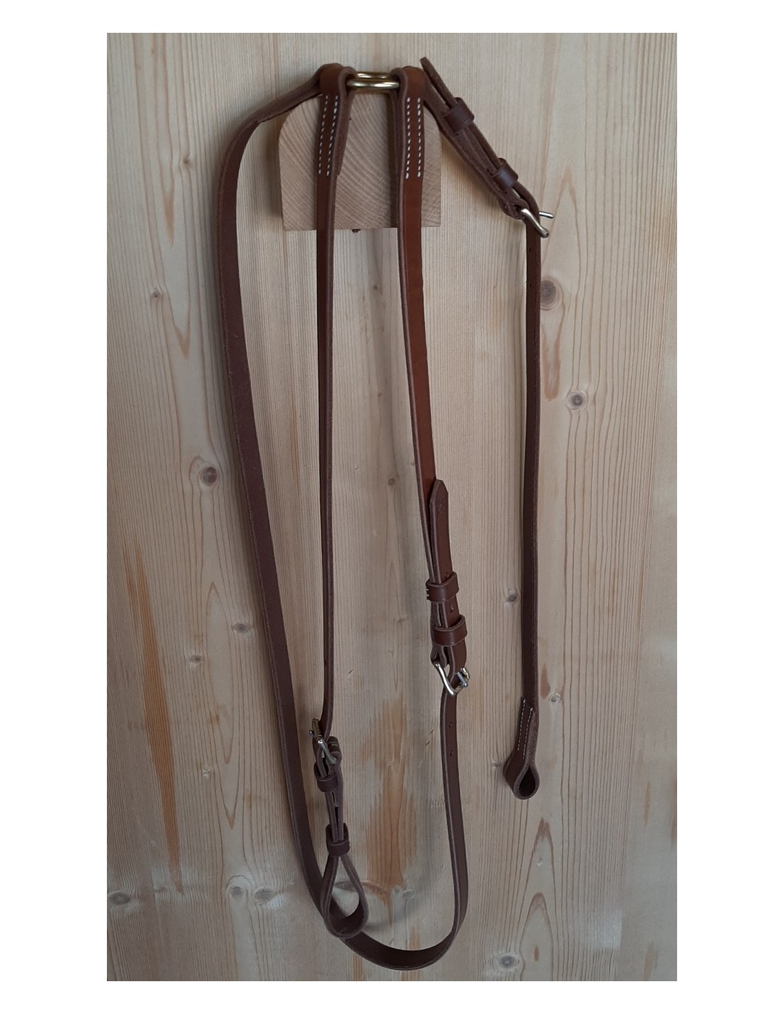 Cette martingale est réalisée dans un cuir naturel à tannage végétal. La bouclerie est en laiton massif.