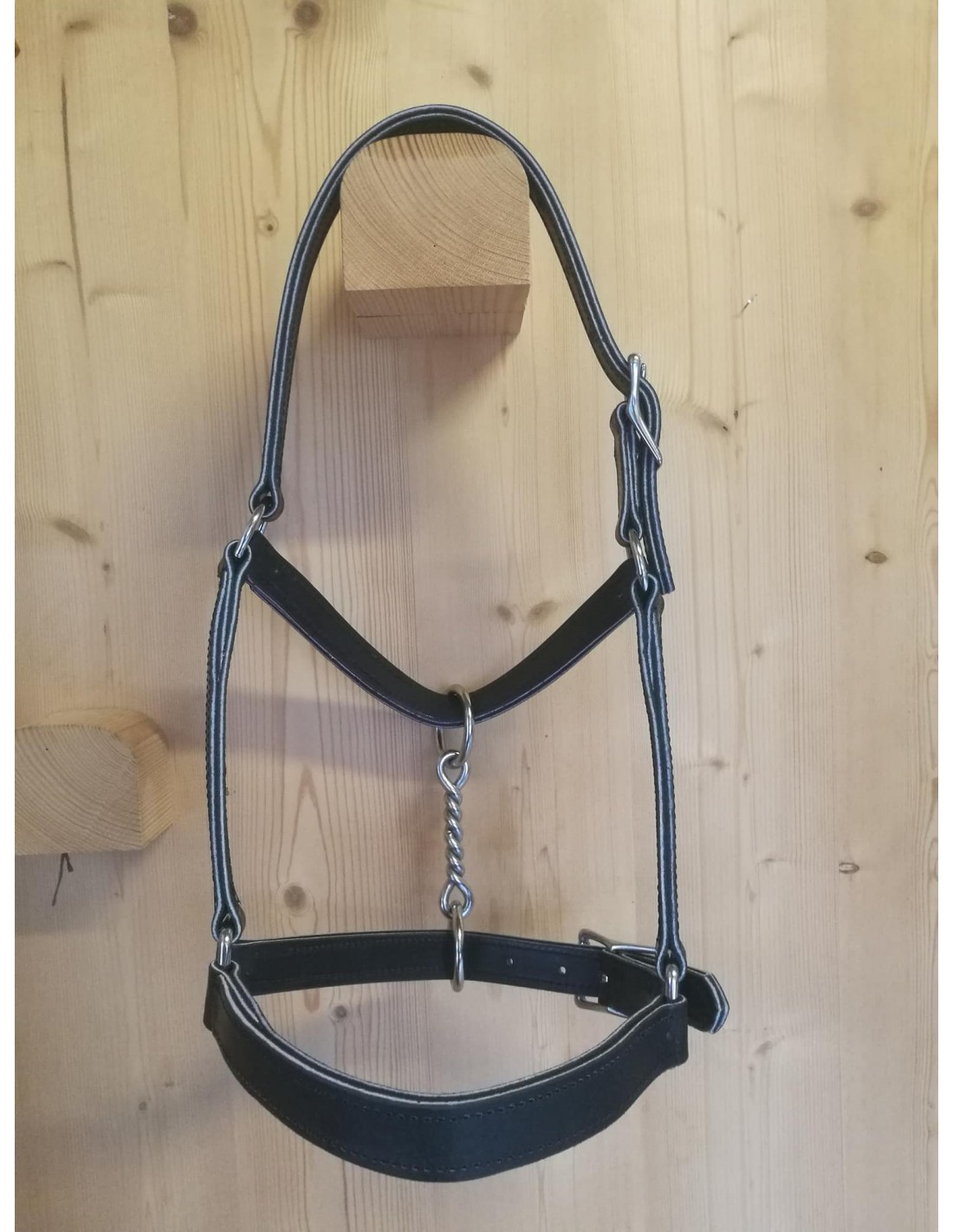 Ce licol en cuir chromé est un licol de travail. Il est entièrement doublé pour une plus grande résistance aux tractions. La bouclerie est en acier inoxydable.