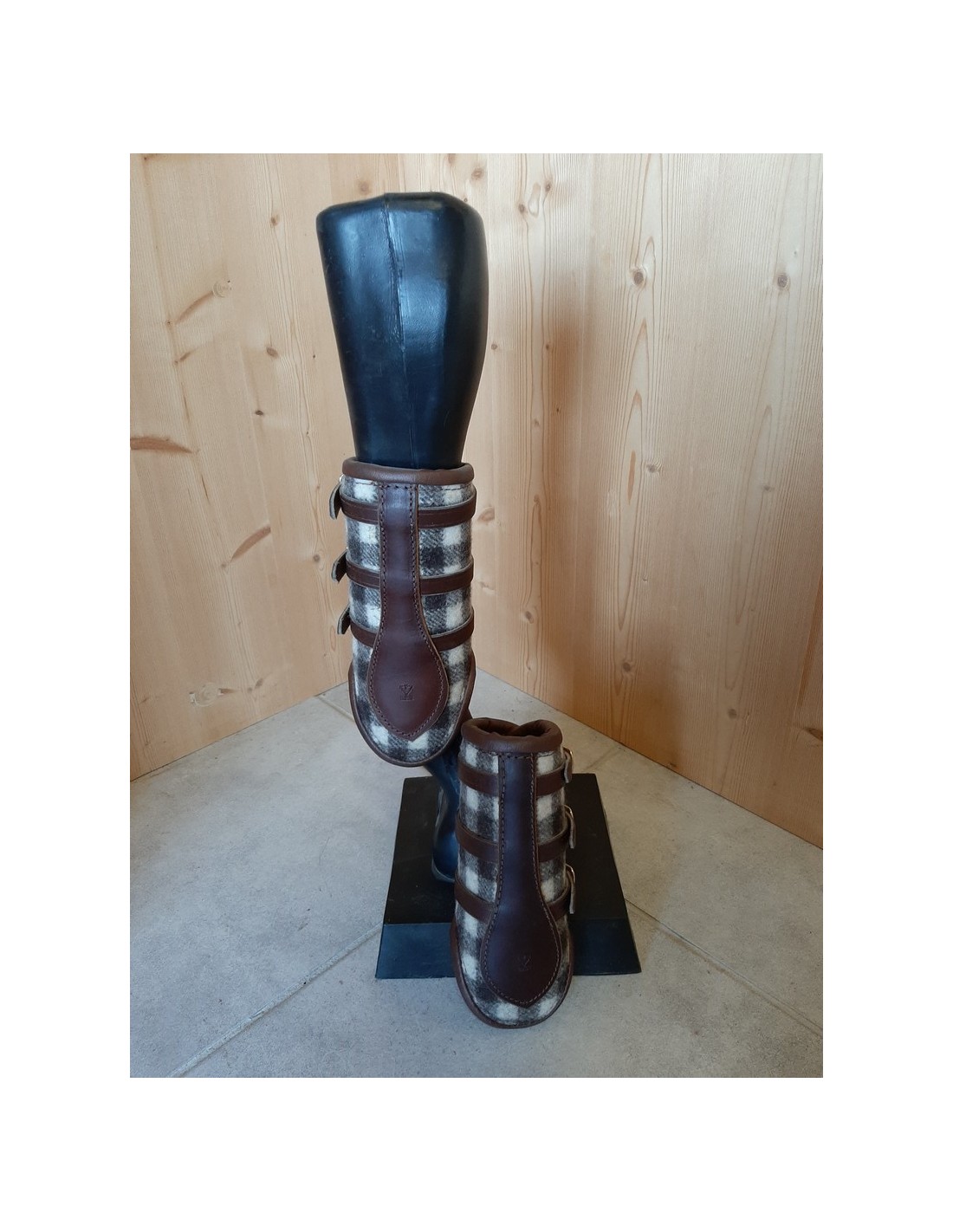 Ces guêtres de travail en néoprène permettent de protéger le cheval en apportant soutient et confort du membre. Elles sont recouvertes de pure laine de mérinos d'Arles. Le cuir est un supportlo, cuir résistant aux diverses agressions extérieures (eau, sable, terre...). La bouclerie est en laiton massif.